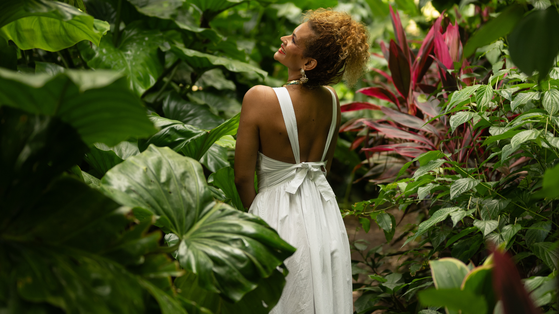 Elle vous fait un dos sublime, vous l’apportez avec élégance, si j’avais une petite modification, j’aurais rajouté un léger voile de coton en doublure. Elle est légèrement transparente.